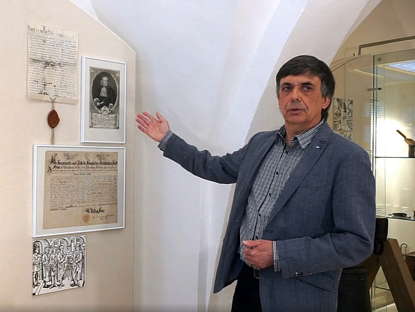 Dr. Mende zeigt das wertvollste Exponat der Sammlung und was man daraus ablesen kann.