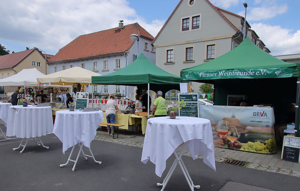 Die Pirnaer Weinfreunde feiern Ihr Weinblütenfest mit Livemusik, gutem Wein und Kleinigkeiten zu Essen und stöbern auf dem Hauptplatz in Pirna Copitz.