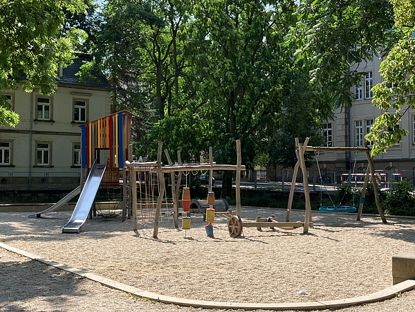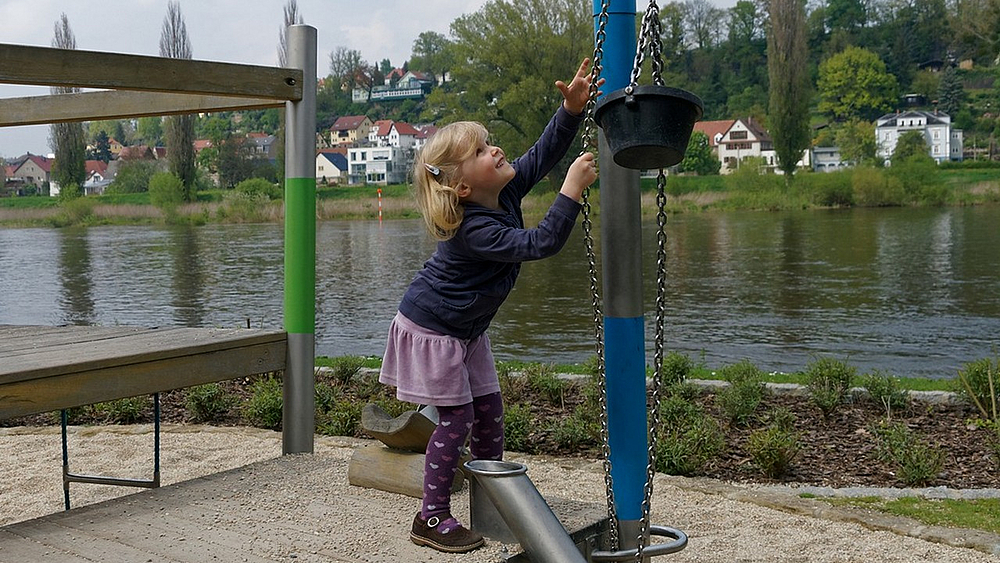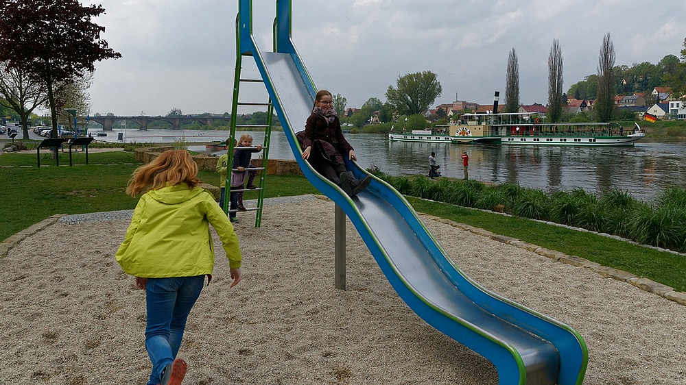 The playground is situated on the left side of the river Elbe, by Pirna’s Elbe car park.