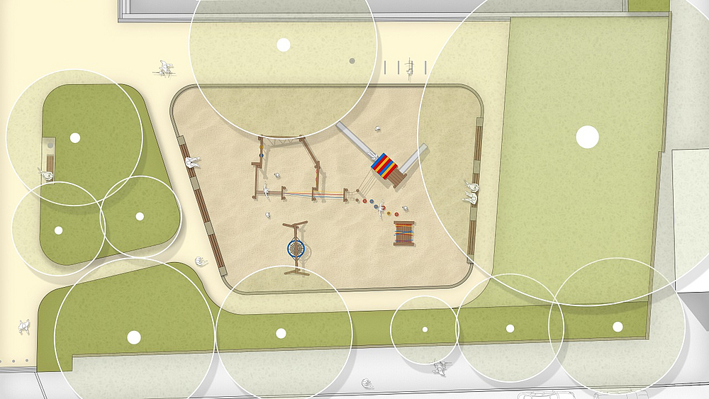 Der Spielplatz stellt einige Abläufe und Werkzeuge der Seilherstellung sowie Einsatzmöglichkeiten von Seilprodukten dar. Das Rutschenhaus verkörpert das „Fabrikgebäude“, in dem die Seilherstellung stattfindet. Die verschiedenen Klettermöglichkeiten im Anschluss zeigen den Produktionsablauf in der Fabrik. Er beginnt mit den kleinen Seilspulen, auf denen die aus Hanf gesponnenen Fäden aufgewickelt werden. Die Fäden werden auf die Seilerbahn aufgezogen und über das Leitholz zu einem dickeren Seil verdreht. Über das Transportrad kann das Seil auf eine große Seiltrommel aufgezogen werden. Die weiteren Spielstationen zeigen Spulen und Spindeln sowie fertiggestellte Seile, die von den Seilern an Balken aufgehängt wurden. Die Nestschaukel demonstriert abschließend die vielseitige Verwendung von Seilprodukten.