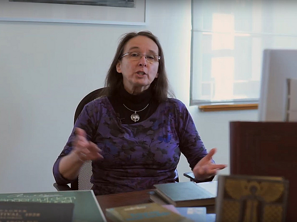 Katja Pinzer-Hennig erklärt, warum Wagners Bibliothek in einem Bücherturm in Graupa nachempfunden wurde.