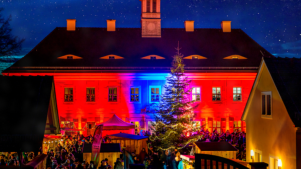 Weihnachtsmarkt mit vielen Ständen mit regionalem Handwerk, ausgewähltem Handel, Spielen, Musik- und Kulturprogramm sowie gastronomischen Genüssen.