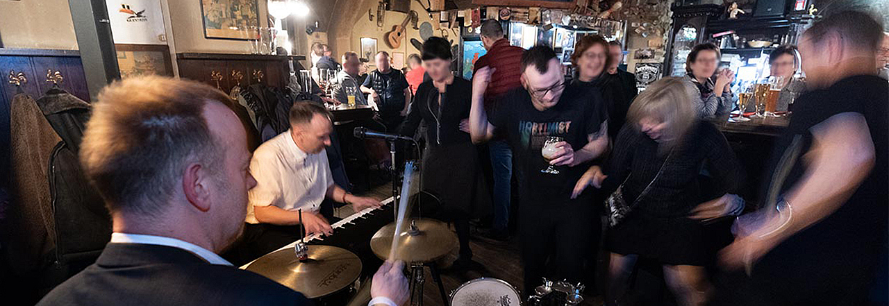 Schlagzeuger Mario Meusel und Pianist Christian Schöbel bereichern die europäische Oldtime-Jazz- Szene seit nunmehr 30 Jahren mit ihrem ganz speziellen Sound. Dieser ist von satten Bluenotes, schweißtreibendem Boogie und swingenden Eskapaden nur so gespickt. Als munter groovende Allzweckwaffe an der Seite von Tom Pauls sorgen die beiden seit Jahren auch in Pirna für Furore, beim ihrem ersten Konzert im Q24 verwandelten sie dieses in eine pulsierende Honky Tonk Diele. Das Motto des Abends ist Programm, denn 2Hot teilen die Bühne gern mit befreundeten Musikern der Szene. Z.B. mit Christian Willisohn, mit dem sie zahlreiche gemeinsame Konzerte verbindet. Der Pianist und Sänger, der lange Zeit in New Orleans gelebt hat, entlockt dem Klavier gefühlvolle Balladen ebenso mühelos wie erdige Klänge aus dem Delta. Mit der Einladung ihrer Lieblingsband, den Perky Pollyvocs erfüllen sich 2Hot einen lange gehegten Wunsch. Es swingt gewaltig! Das Trio garniert seinen mitunter verschmitzt an Kontrabass, Standschlagzeug und Gitarre dargebotenen Satzgesang mit Anleihen bei Doo Wop, Gospel und Hillibilly. 6 Musiker: 6 Freunde. Eine heiße Session ist garantiert. Willkommen zur Boogie Party des Jahres: Swingtanzen ausdrücklich erlaubt!