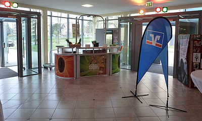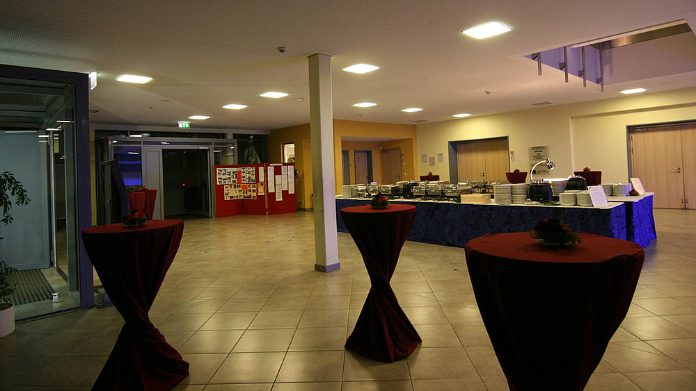Im Foyerbereich der HerderHalle Pirna befindet sich eine gut ausgestattete Cateringküche, die über einen eigenen Lieferanteneingang bestückt werden kann.