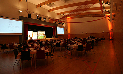 - Veranstaltungshalle mit Bühne (ca. 460m²)
