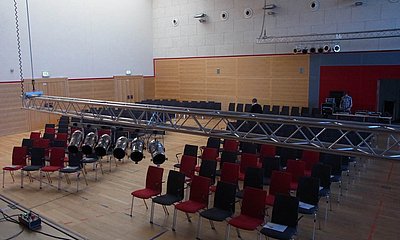 - Traversensystem Eurotruss Viereck 2m vor der Saalrückwand