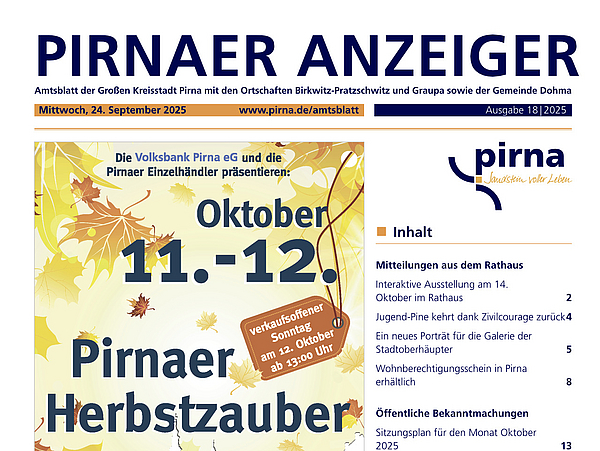 Pirnaer Anzeiger – Inhalt der aktuellen Ausgabe 20 | 2025